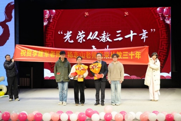 “光荣从教三十年”庆典活动上,祝贺并表彰李建军教授与杨志山副教授两位老师。李建军教授作为教师代表(成人导航