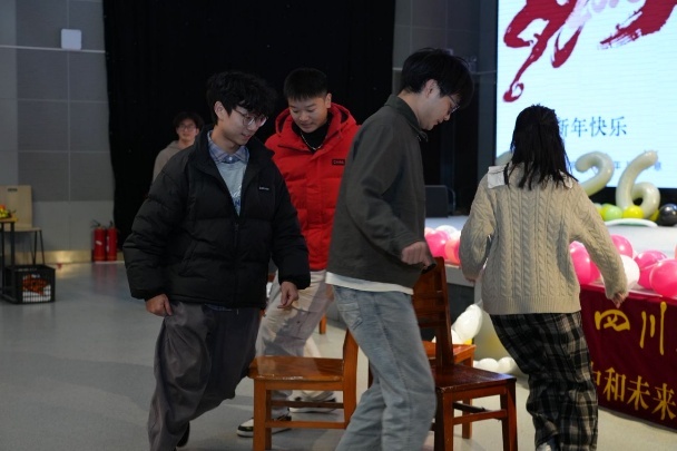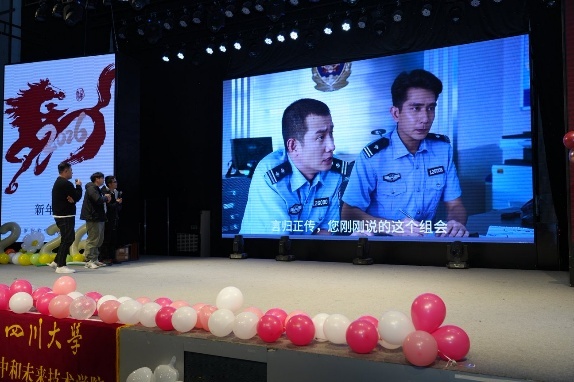 在江安校区隆重举办2026新年联欢会。场馆内灯火璀璨、笑语盈盈,一场精彩纷呈的联欢在此热烈上演,为全体师生送上了真挚的新年祝福。联欢会由硕士生丁月和王子成主持。