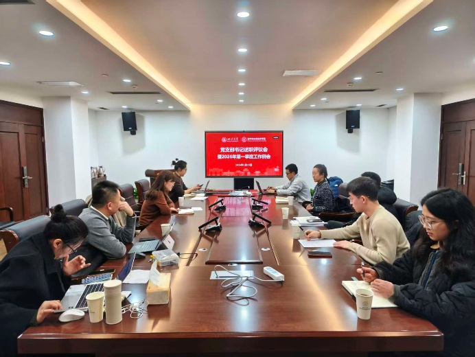 在江安行政楼517会议室召开党支部书记述职评议会暨2026年第一季度工作例会。院党总支委委员、组织员,党支部书记参加会议。会议由院党总支书记江霞同志主持。
