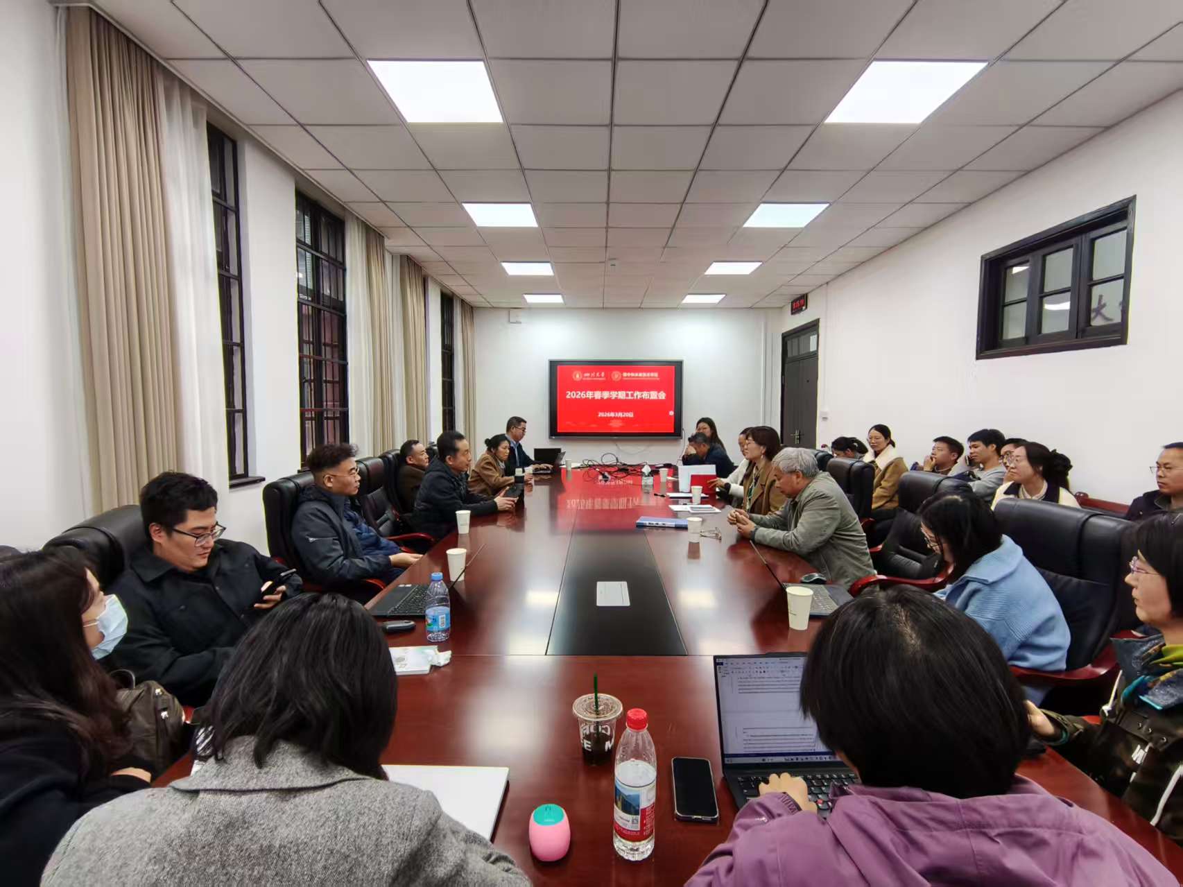 在望江校区行政楼137会议室召开2026年春季学期工作布置会。学院党总支书记、常务副院长江霞主持会议并讲话,全院教职工参会。